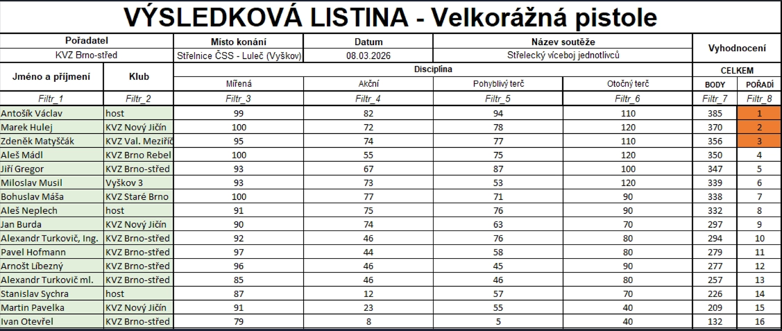 Střelecký víceboj jednotlivců. Propozice zde: Výsledky VPi zde: MPi zde: |